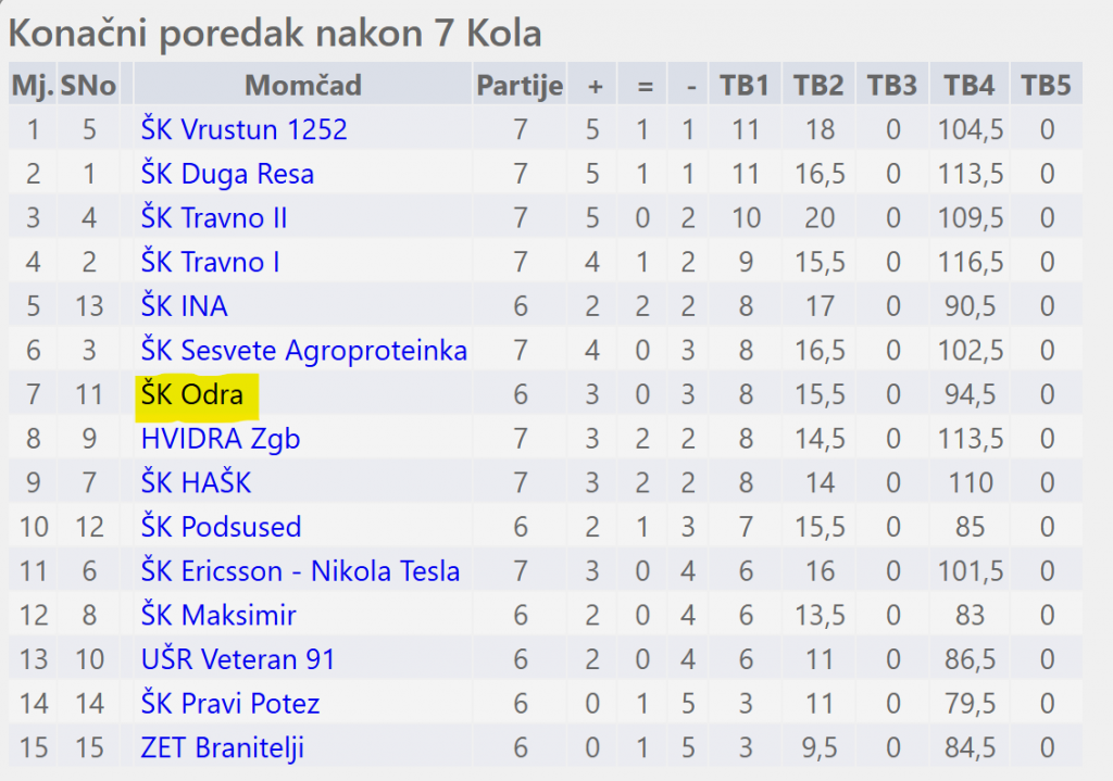 Ekipa ŠK Odre natjecanje je završila na 7. mjestu od ukupno 15 ekipa, uz solidnu i borbenu igru kroz cijeli turnir. Nastupili su redom: Ivan Vraneša, Božo Cvetković, Luka Fiolić i Goran Fiolić. Ipak, jedan se nastup posebno izdvojio.